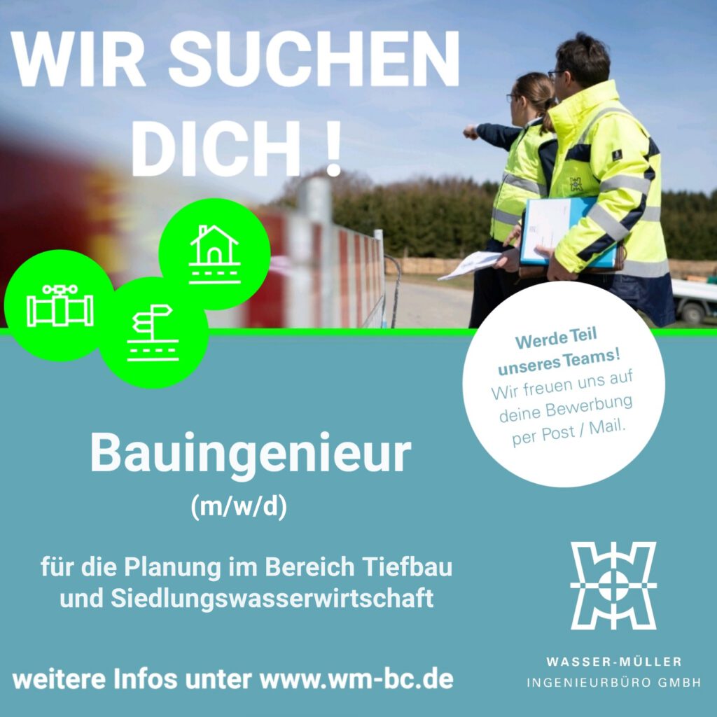 Deine Aufgaben . Bauleitung verschiedener Projekte im Bereich Tiefbau und Siedlungswasserwirtschaft . Ausschreibung und Abrechnung von Baumaßnahmen . Unterstützung des Projektplaners sowie Erstellung kleinerer Planungen . Eigenverantwortliche Bearbeitung und Koordination von Projekten . Abstimmungen und Besprechungen mit Bauherren, Baufirmen und beteiligten Planern
