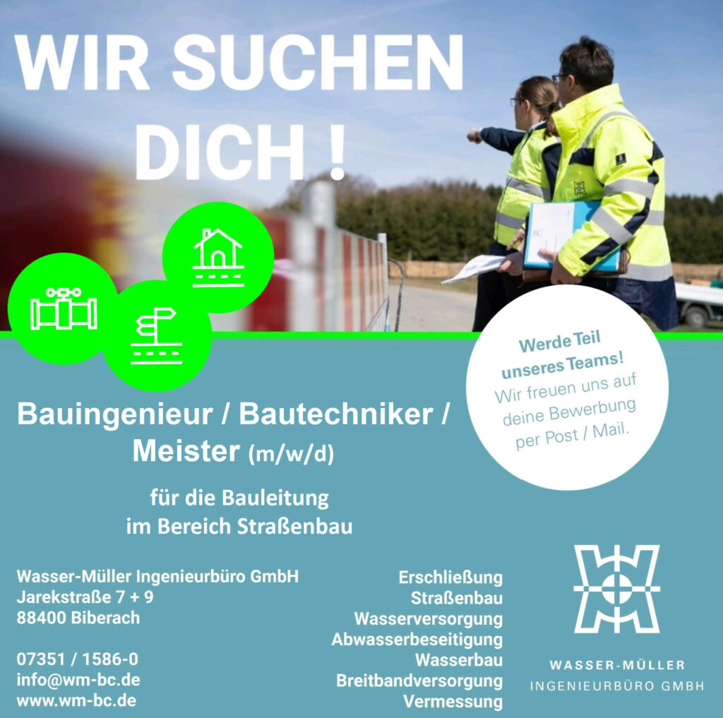 Dein Profil . Berufserfahrung im Bereich Tief-, Straßen- und Landschaftsbau . selbstständiges und strukturiertes Arbeiten . persönliches Engagement und Organisationsgeschick . Arbeiten im Team mit Planungsingenieur:innen und Bauzeichner:innen . Flexibiltät . Führerschein Klasse B